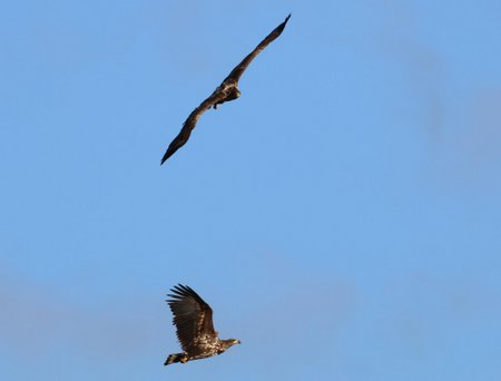 WHITE-TAILED EAGLE, RING-NECKED DUCK, 2 Great White Egret, 3 Little Egret, Goosander, 3 Kingfisher, 5 Yellow-legged Gull, 1500 Lesser Black-backed Gull, 3 Common Gull, 6 Herring Gull, 100 Black-headed Gull, Wigeon, 9 Teal, 8 Shoveler, 91 Gadwall, 3 Snipe, 4 Red Kite2 Stonechat, 2 Kingfisher, 55 Redwing, Chiffchaff, Cetti's Warbler - Langford Lakes - Nigel Smith, Bjorn Howard, Mike Trew
